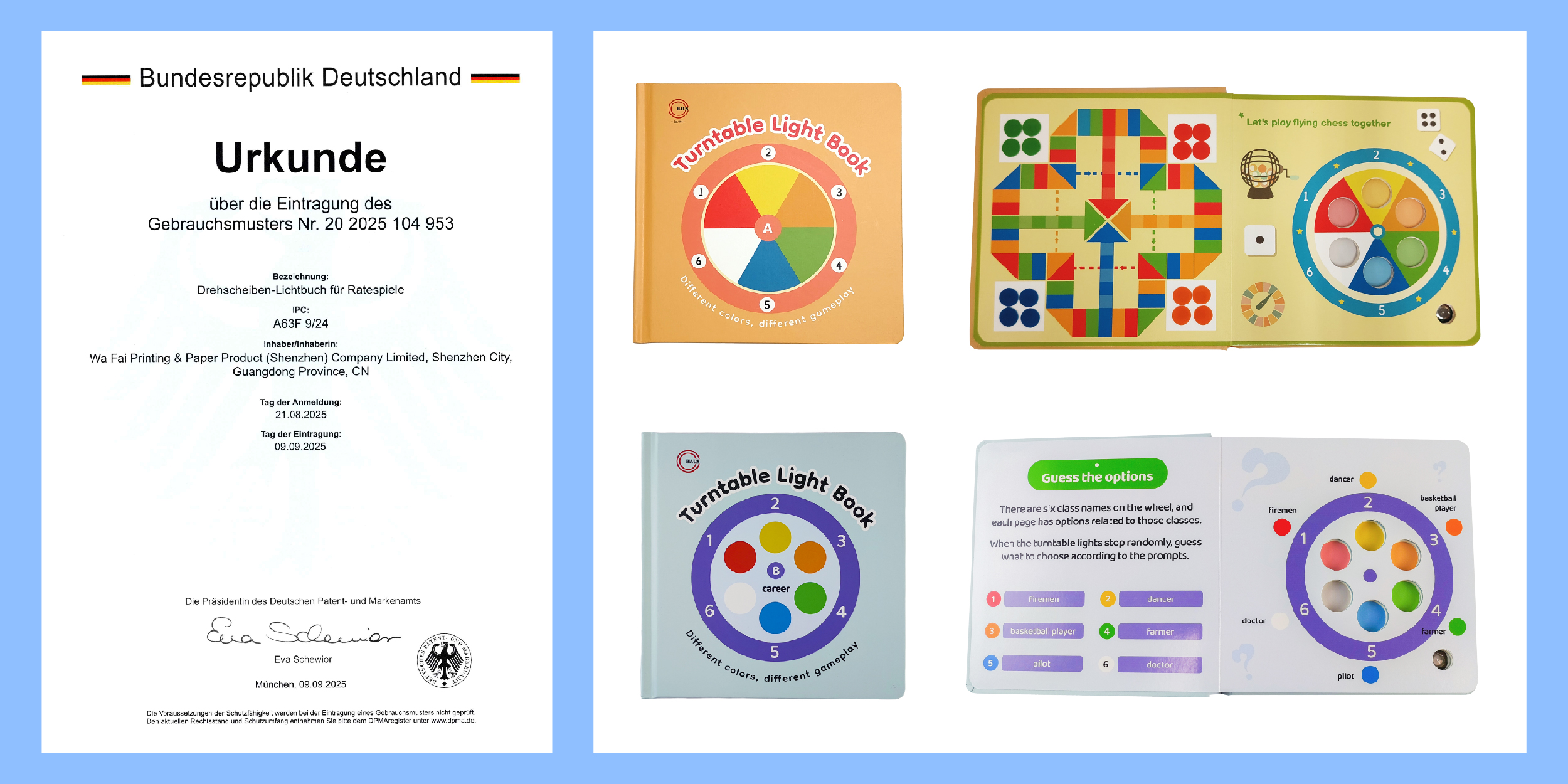 公司创新产品“转盘灯光书”已于2025年9月正式获得欧盟专利授权,专利号:20 2025 104 953.8。